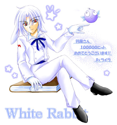 ライラさんに10万ヒットお祝いを頂いてしまいましたw 本物より美形な白ウサギです!w | ||