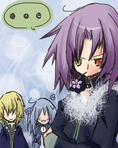 零ゼロ第十二章のあのシーンを描いてくださいましたー!(笑) 花を咥えたオッドアイとそれを見る2人が最高ですb | ||