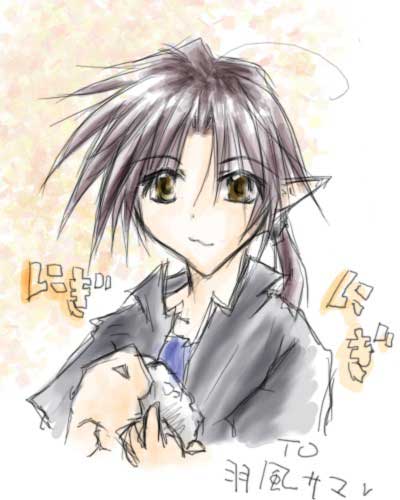なんか、いかに自分の絵がロリっているかを再認識しました(汗) 男前なオッドアイをありがとうございました〜(ほぼ強奪品) | ||